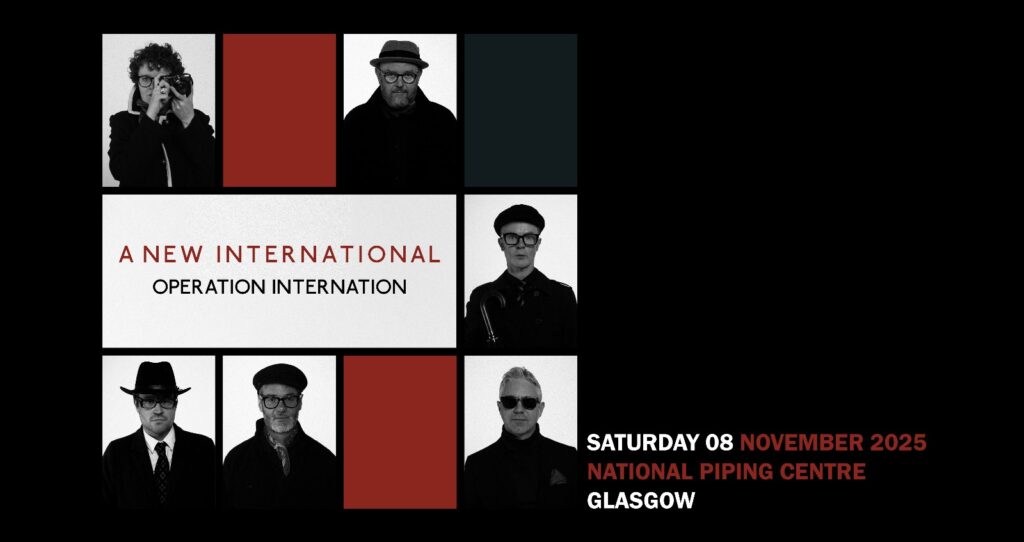 From Glasgow to the world, we are proud to present our fourth album Operation Internation; a 20-song double album featuring a unique collaboration with the Glasgow School of Art Choir and the sweeping strings of the Up North Session Orchestra. Come in from the cold and celebrate with us with a rare, one-night-only, full band, live show at the National Piping Centre on Saturday November 8th.